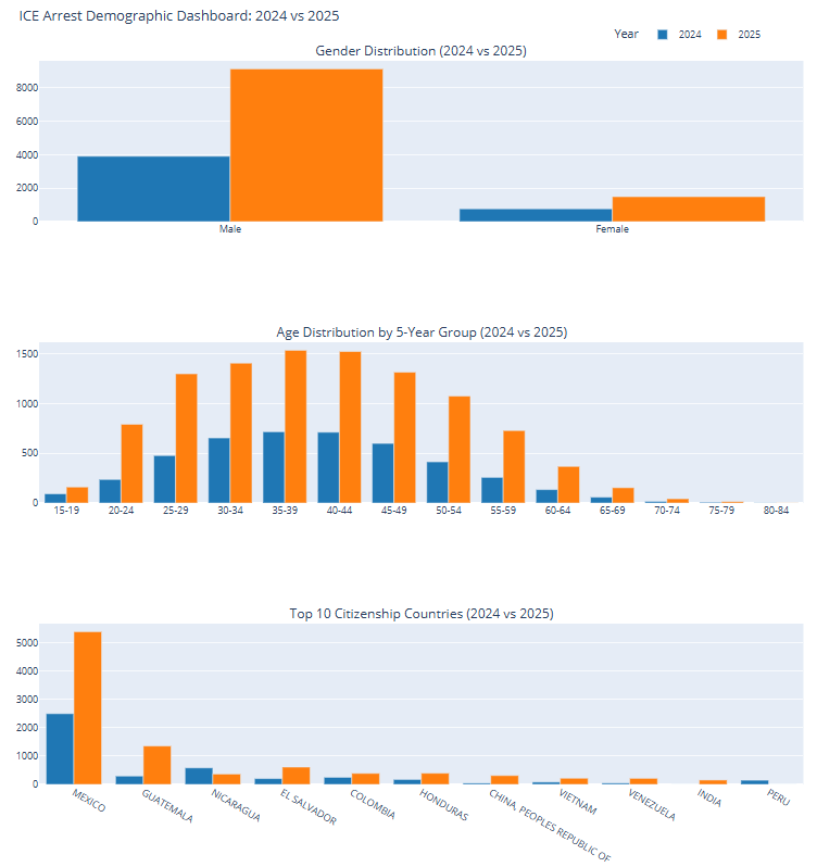 Figure 5: ICE Arrest Demographic Dashboard (2024 vs 2025)